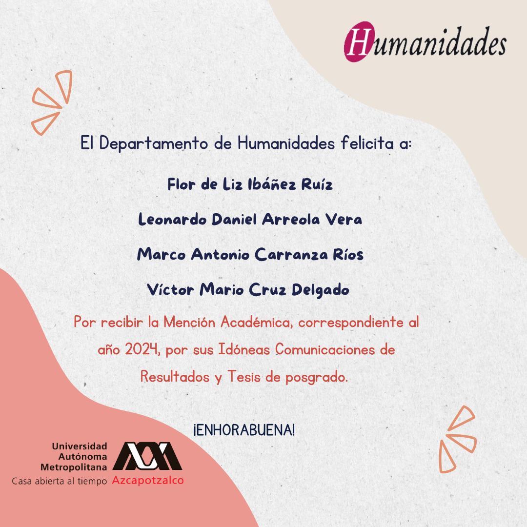 Felicitación a la alumna y los alumnos de los posgrados del departamento que obtuvieron la Mención Académica correspondiente al 2024.